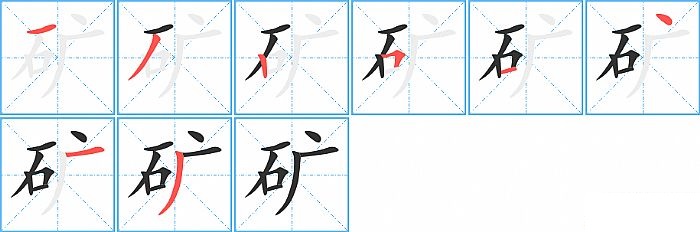《矿》字的笔顺分步演示图(一笔一画写汉字)