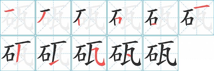 砙是左右结构,砙的部首是“石”,部外笔画4画,总笔画9画,砙的笔画顺序是“横、撇、竖、横折、横、横、竖提、横折弯钩/横斜钩、点”。看看“砙”字什么意思 >>