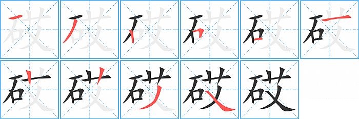 《砹》字的笔顺分步演示图(一笔一画写汉字)