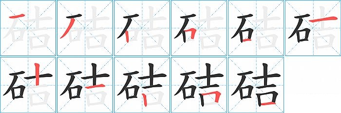 硈是左右结构,硈的部首是“石”,部外笔画6画,总笔画11画,硈的笔画顺序是“横、撇、竖、横折、横、横、竖、横、竖、横折、横”。看看“硈”字什么意思 >>