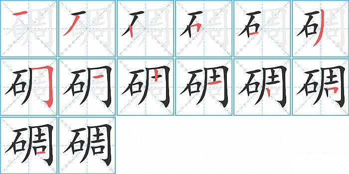 碉是左右结构,碉的部首是“石”,部外笔画8画,总笔画13画,碉的笔画顺序是“横、撇、竖、横折、横、撇、横折钩、横、竖、横、竖、横折、横”。看看“碉”字什么意思 >>