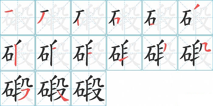 碫是左右结构,碫的部首是“石”,部外笔画9画,总笔画14画,碫的笔画顺序是“横、撇、竖、横折、横、撇、竖、横、横、提、撇、横折折/横折弯、横撇/横钩、捺”。看看“碫”字什么意思 >>
