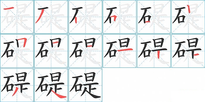 碮是左右结构,碮的部首是“石”,部外笔画9画,总笔画14画,碮的笔画顺序是“横、撇、竖、横折、横、竖、横折、横、横、横、竖、横、撇、捺”。看看“碮”字什么意思 >>