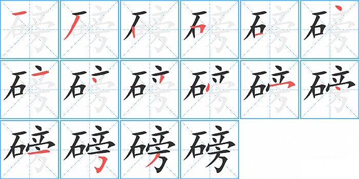 磅是左右结构,磅的部首是“石”,部外笔画10画,总笔画15画,磅的笔画顺序是“横、撇、竖、横折、横、点、横、点、撇、点、横撇/横钩、点、横、横折钩、撇”。看看“磅”字什么意思 >>