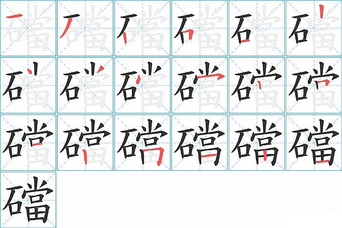 礑是左右结构,礑的部首是“石”,部外笔画13画,总笔画18画,礑的笔画顺序是“横、撇、竖、横折、横、竖、点、撇、点、横撇/横钩、竖、横折、横、竖、横折、横、竖、横”。看看“礑”字什么意思 >>