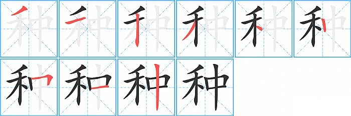 《种》字的笔顺分步演示图(一笔一画写汉字)