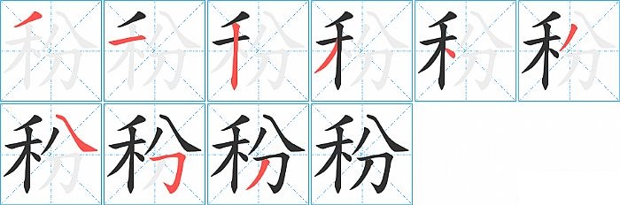 《秎》字的笔顺分步演示图(一笔一画写汉字)