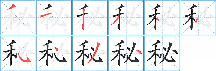 《秘》字的笔顺分步演示图(一笔一画写汉字)