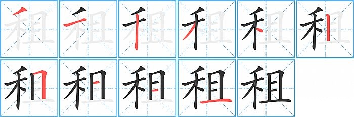 《租》字的笔顺分步演示图(一笔一画写汉字)