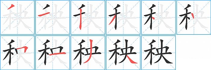 《秧》字的笔顺分步演示图(一笔一画写汉字)