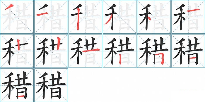稓是左右结构,稓的部首是“禾”,部外笔画8画,总笔画13画,稓的笔画顺序是“撇、横、竖、撇、点、横、竖、竖、横、竖、横折、横、横”。看看“稓”字什么意思 >>