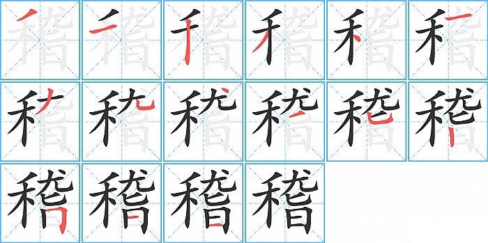 稽是左右结构,稽的部首是“禾”,部外笔画10画,总笔画15画,稽的笔画顺序是“撇、横、竖、撇、点、横、撇、竖弯钩、点、撇、竖弯钩、竖、横折、横、横”。看看“稽”字什么意思 >>