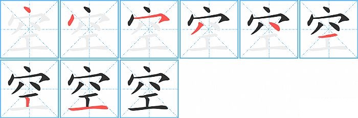《空》字的笔顺分步演示图(一笔一画写汉字)