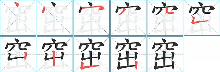 窋是上下结构,窋的部首是“穴”,部外笔画5画,总笔画10画,窋的笔画顺序是“点、点、横撇/横钩、撇、点、竖折/竖弯、竖、竖、竖折/竖弯、竖”。看看“窋”字什么意思 >>