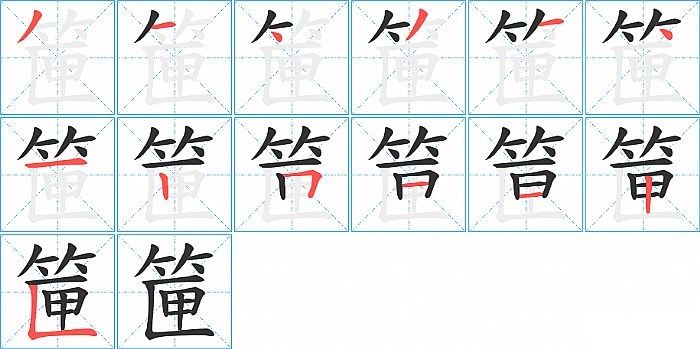 筪是上下结构,筪的部首是“竹”,部外笔画7画,总笔画13画,筪的笔画顺序是“撇、横、点、撇、横、点、横、竖、横折、横、横、竖、竖折/竖弯”。看看“筪”字什么意思 >>