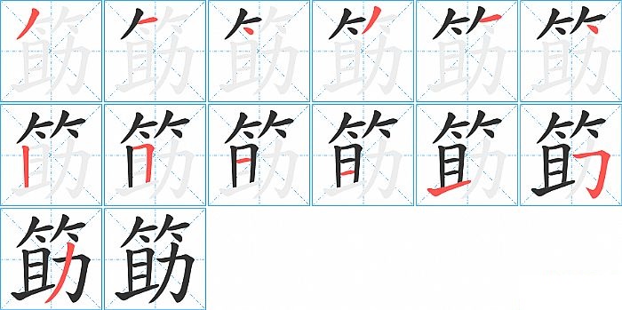 筯是上下结构,筯的部首是“竹”,部外笔画7画,总笔画13画,筯的笔画顺序是“撇、横、点、撇、横、点、竖、横折、横、横、提、横折钩、撇”。看看“筯”字什么意思 >>