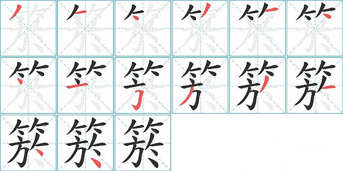 箊是上下结构,箊的部首是“竹”,部外笔画8画,总笔画14画,箊的笔画顺序是“撇、横、点、撇、横、点、点、横、横折钩、撇、撇、捺、点、点”。看看“箊”字什么意思 >>
