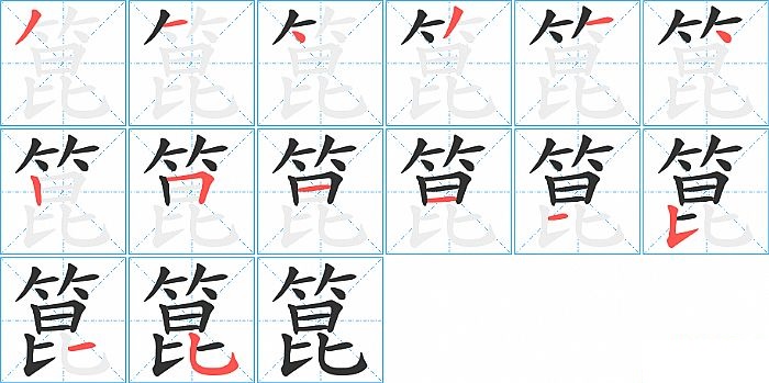 箟是上下结构,箟的部首是“竹”,部外笔画8画,总笔画14画,箟的笔画顺序是“撇、横、点、撇、横、点、竖、横折、横、横、横、竖提、撇、竖弯钩”。看看“箟”字什么意思 >>