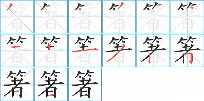 箸是上下结构,箸的部首是“竹”,部外笔画8画,总笔画14画,箸的笔画顺序是“撇、横、点、撇、横、点、横、竖、横、撇、竖、横折、横、横”。看看“箸”字什么意思 >>