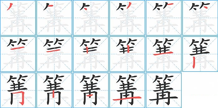 篝是上下结构,篝的部首是“竹”,部外笔画10画,总笔画16画,篝的笔画顺序是“撇、横、点、撇、横、点、横、横、竖、竖、横、竖、横折钩、竖、横、横”。看看“篝”字什么意思 >>