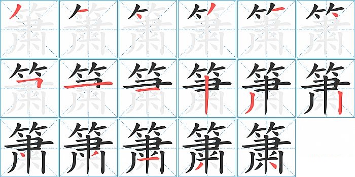 簘是上下结构,簘的部首是“竹”,部外笔画11画,总笔画17画,簘的笔画顺序是“撇、横、点、撇、横、点、横折、横、横、竖、点、撇、横、撇、点、撇、竖”。看看“簘”字什么意思 >>