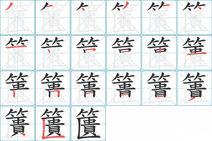 籄是上下结构,籄的部首是“竹”,部外笔画14画,总笔画20画,籄的笔画顺序是“撇、横、点、撇、横、点、横、竖、横折、横、竖、横、竖、横折、横、横、横、撇、点、竖折/竖弯”。看看“籄”字什么意思 >>