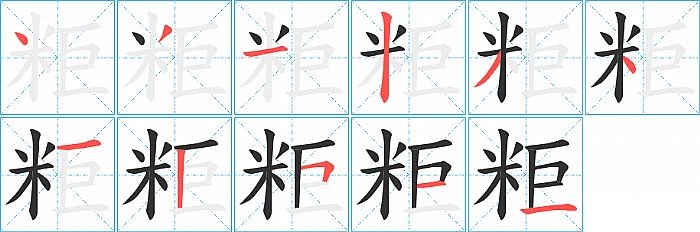 粔是左右结构,粔的部首是“米”,部外笔画4画,总笔画10画,粔的笔画顺序是“点、撇、横、竖、撇、点、横、横折、横、竖折/竖弯”。看看“粔”字什么意思 >>