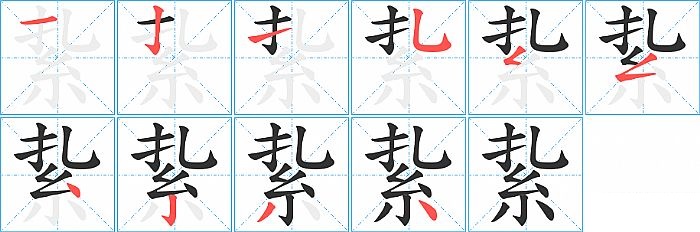 紥是上下结构,紥的部首是“糸”,部外笔画4画,总笔画10画,紥的笔画顺序是“横、竖钩、提、竖弯钩、撇折、撇折、点、竖钩、撇、点”。看看“紥”字什么意思 >>
