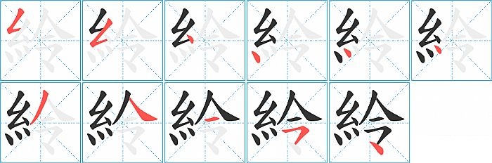 紷是左右结构,紷的部首是“糹”,部外笔画5画,总笔画11画,紷的笔画顺序是“撇折、撇折、点、点、点、点、撇、捺、点、横撇/横钩、点”。看看“紷”字什么意思 >>