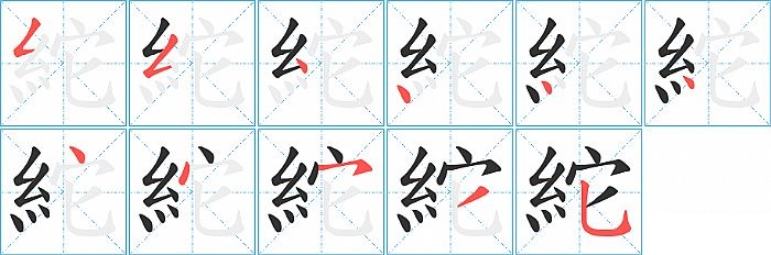 紽是左右结构,紽的部首是“糹”,部外笔画5画,总笔画11画,紽的笔画顺序是“撇折、撇折、点、点、点、点、点、点、横撇/横钩、撇、竖弯钩”。看看“紽”字什么意思 >>