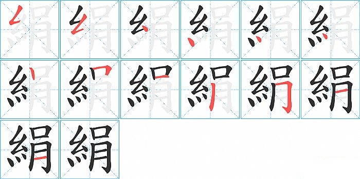 絹是左右结构,絹的部首是“糹”,部外笔画7画,总笔画13画,絹的笔画顺序是“撇折、撇折、点、点、点、点、竖、横折、横、竖、横折钩、横、横”。看看“絹”字什么意思 >>