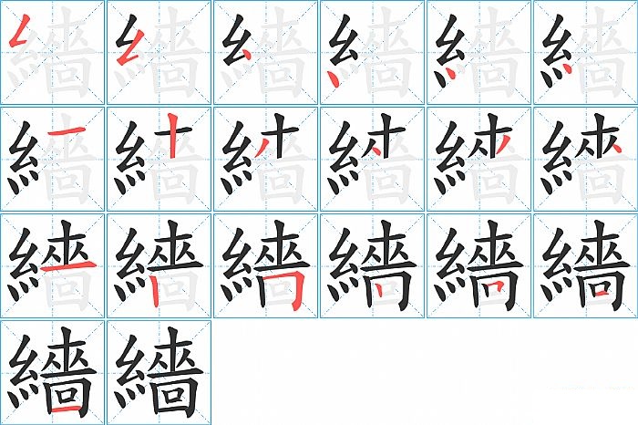 繬是左右结构,繬的部首是“糹”,部外笔画13画,总笔画19画,繬的笔画顺序是“撇折、撇折、点、点、点、点、横、竖、撇、点、撇、点、横、竖、横折、竖、横折、横、横”。看看“繬”字什么意思 >>