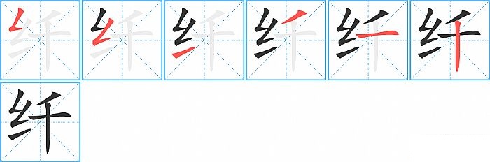 《纤》字的笔顺分步演示图(一笔一画写汉字)
