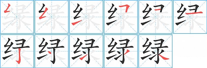 绿是左右结构,绿的部首是“纟”,部外笔画8画,总笔画11画,绿的笔画顺序是“撇折、撇折、提、横折、横、横、竖钩、点、提、撇、捺”。看看“绿”字什么意思 >>
