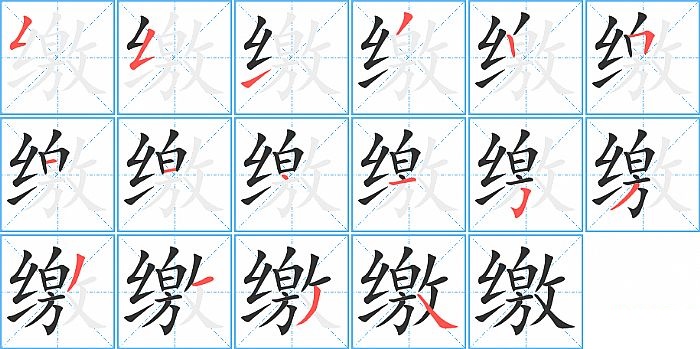 缴是左右结构,缴的部首是“纟”,部外笔画13画,总笔画16画,缴的笔画顺序是“撇折、撇折、提、撇、竖、横折、横、横、点、横、横折钩、撇、撇、横、撇、捺”。看看“缴”字什么意思 >>