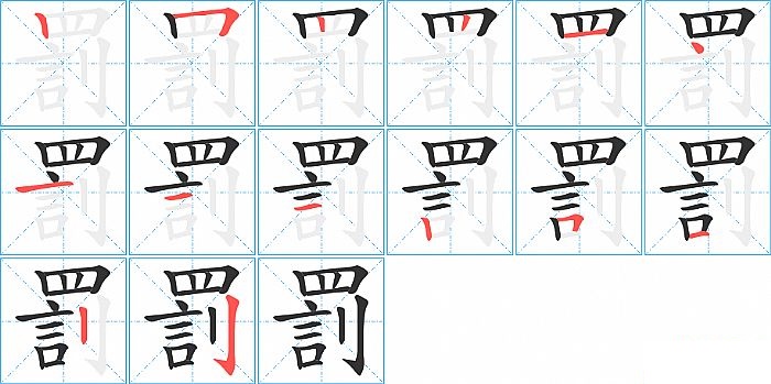 罰是上下结构,罰的部首是“罒”,部外笔画9画,总笔画14画,罰的笔画顺序是“竖、横折、竖、竖、横、点、横、横、横、竖、横折、横、竖、竖钩”。看看“罰”字什么意思 >>