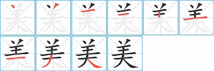 《美》字的笔顺分步演示图(一笔一画写汉字)