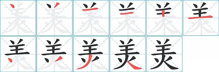 《羙》字的笔顺分步演示图(一笔一画写汉字)
