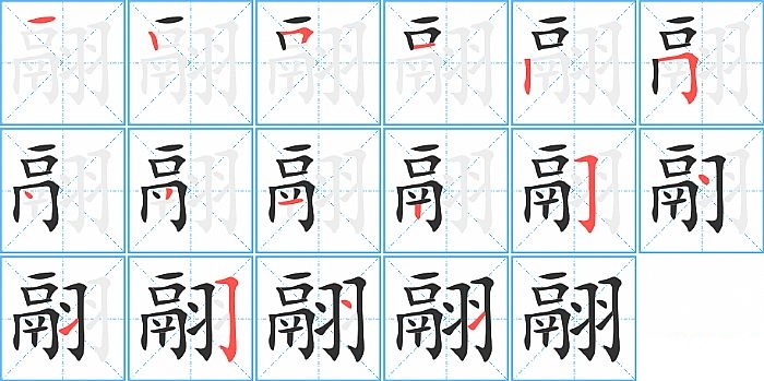 翮是左右结构,翮的部首是“羽”,部外笔画10画,总笔画16画,翮的笔画顺序是“横、竖、横折、横、竖、横折钩、点、撇、横、竖、横折钩、点、提、横折钩、点、提”。看看“翮”字什么意思 >>