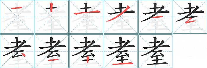 耊是上下结构,耊的部首是“耂”,部外笔画6画,总笔画10画,耊的笔画顺序是“横、竖、横、撇、横、撇折、点、横、竖、横”。