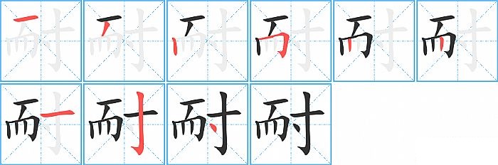 《耐》字的笔顺分步演示图(一笔一画写汉字)