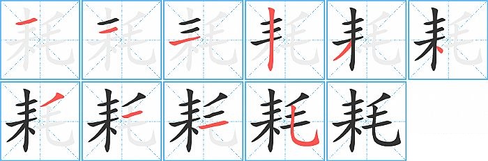 《耗》字的笔顺分步演示图(一笔一画写汉字)