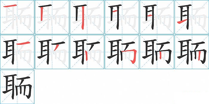 聏是左右结构,聏的部首是“耳”,部外笔画6画,总笔画12画,聏的笔画顺序是“横、竖、竖、横、横、提、横、撇、竖、横折钩、竖、竖”。看看“聏”字什么意思 >>
