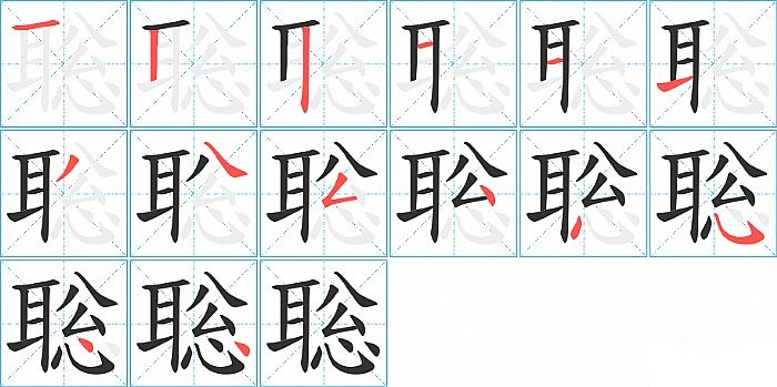 聡是左右结构,聡的部首是“耳”,部外笔画8画,总笔画14画,聡的笔画顺序是“横、竖、竖、横、横、提、撇、捺、撇折、点、点、斜钩、点、点”。看看“聡”字什么意思 >>