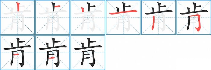 《肯》字的笔顺分步演示图(一笔一画写汉字)