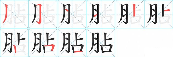 《胋》字的笔顺分步演示图(一笔一画写汉字)