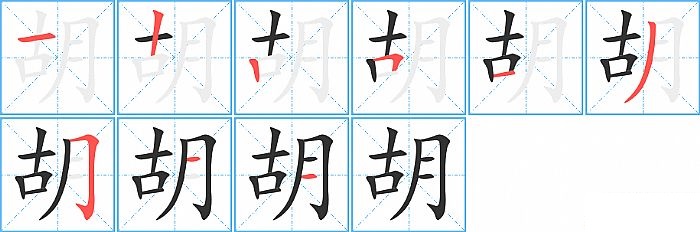 《胡》字的笔顺分步演示图(一笔一画写汉字)