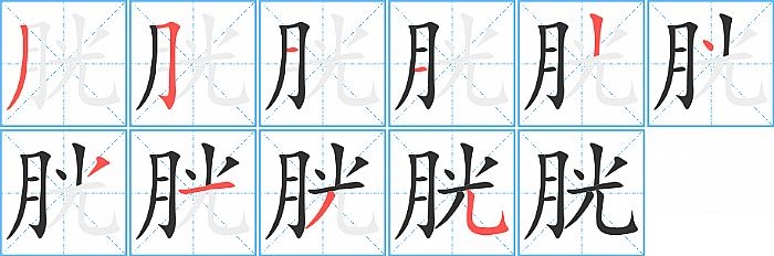 胱是左右结构,胱的部首是“月”,部外笔画6画,总笔画10画,胱的笔画顺序是“撇、横折钩、横、横、竖、点、撇、横、撇、竖弯钩”。看看“胱”字什么意思 >>
