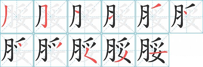 脮是左右结构,脮的部首是“月”,部外笔画7画,总笔画11画,脮的笔画顺序是“撇、横折钩、横、横、撇、点、点、撇、撇点、撇、横”。看看“脮”字什么意思 >>