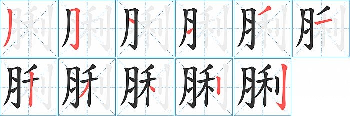 脷是左右结构,脷的部首是“月”,部外笔画7画,总笔画11画,脷的笔画顺序是“撇、横折钩、横、横、撇、横、竖、撇、点、竖、竖钩”。看看“脷”字什么意思 >>